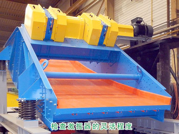 檢查激振器的靈活程度,用手轉(zhuǎn)動皮帶輪使偏心塊脫離平衡位置后,應出現(xiàn)數(shù)次自由擺動,如篩子到貨后時間超過半年后才安裝,激振器應全部拆下重新清洗加油。