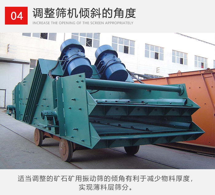 礦用振動篩在設(shè)計傾角時通常情況下為45°,但在實際使用過程中如果物料中雜質(zhì)少只需粗篩一下就行的時候用戶可以適當調(diào)節(jié)進料口下部的振動彈簧高度,使進料口高度升高就可以加快物料在篩面的運動從而提高產(chǎn)量。