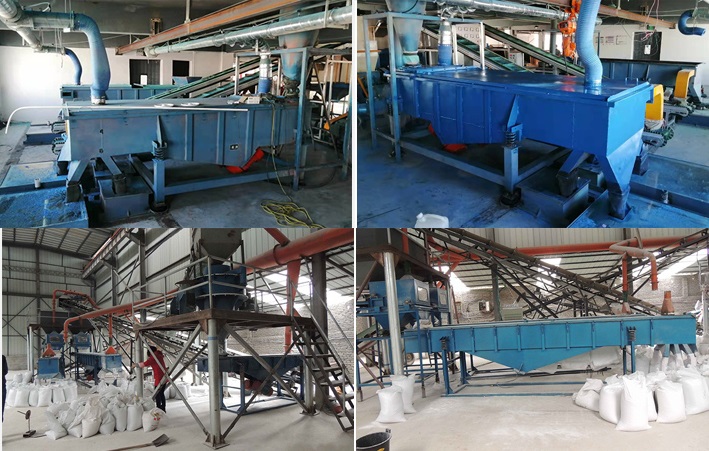 塑料顆粒通過輸送帶進入多層直線篩設(shè)備,由于電機激振力和自身重力的雙重作用,塑料顆粒沿直線篩面直線跳躍,上層塑料顆粒在上排料口被篩出,而小于篩網(wǎng)目數(shù)的塑料顆粒進入下部篩網(wǎng),仍沿同一物料運動軌跡。經(jīng)過三層篩網(wǎng)后,塑料顆粒分為大于2.5mm塑料顆粒、2.5mm-1.4mm塑料顆粒、1.4mm-80目塑料顆粒、小于80目塑料顆粒等四種規(guī)格的材料,還可根據(jù)要求選擇6層不通目數(shù)的篩網(wǎng),以實現(xiàn)要求的分級效果。