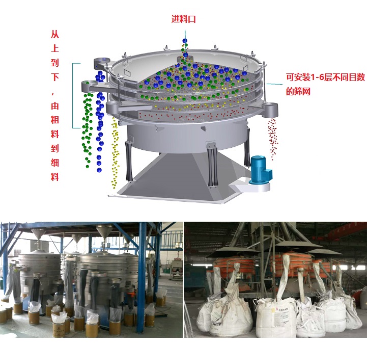圓形搖擺篩采用仿人工篩分原理,用于準(zhǔn)確分離1-6級粉粒,通常用于干燥、粉狀、顆粒狀產(chǎn)品的篩分、分級和除塵,特別適用于細(xì)、脆、輕等難于篩分的產(chǎn)品。