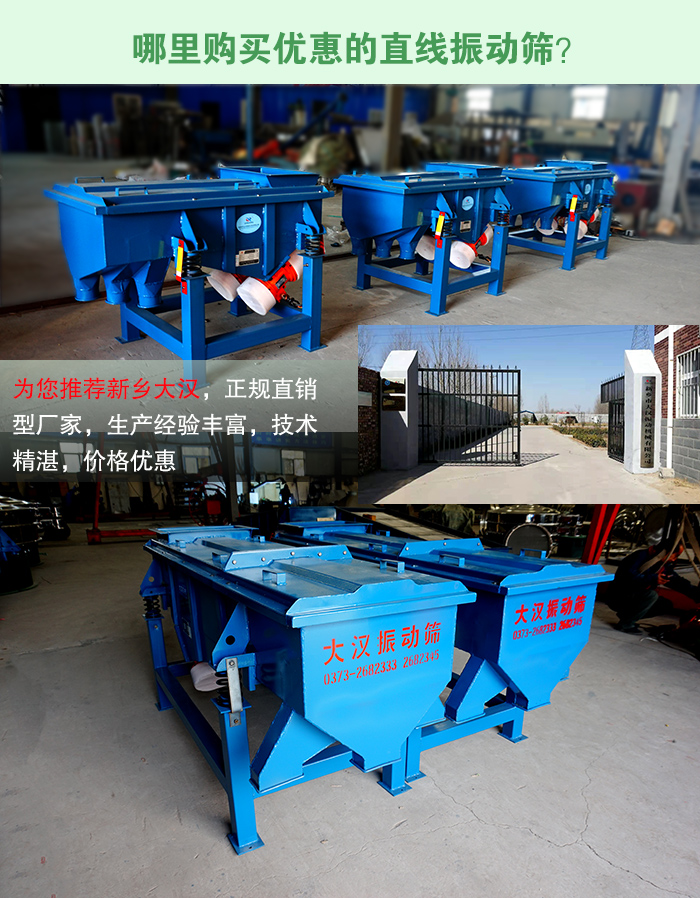 說(shuō)到正規(guī)直銷(xiāo)型廠家,這里不得不為您推薦新鄉(xiāng)大漢了,大漢公司生產(chǎn)直線振動(dòng)篩已經(jīng)有些年頭,生產(chǎn)經(jīng)驗(yàn)豐富,技術(shù)精湛,再加上新鄉(xiāng)大漢地處河南地區(qū),競(jìng)爭(zhēng)壓力大,為了一定的市場(chǎng)份額,大漢廠家在保證直線振動(dòng)篩質(zhì)量的基礎(chǔ)上也會(huì)降低價(jià)格,滿足用戶的期望值,此外,大漢是直銷(xiāo)型廠家,在價(jià)格方面更具有優(yōu)勢(shì),因此,大漢給出的設(shè)備價(jià)格普遍要低于其他廠家,有需要直線振動(dòng)篩設(shè)備的用戶朋友,可點(diǎn)擊客服進(jìn)行詳細(xì)了解。
