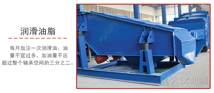 5、高效振動(dòng)篩若采用潤(rùn)滑脂潤(rùn)滑,應(yīng)每月加注一次潤(rùn)滑油。油量不宜過多,加油量不應(yīng)超過整個(gè)軸承空間的三分之二,否則會(huì)引起軸承溫度過高。