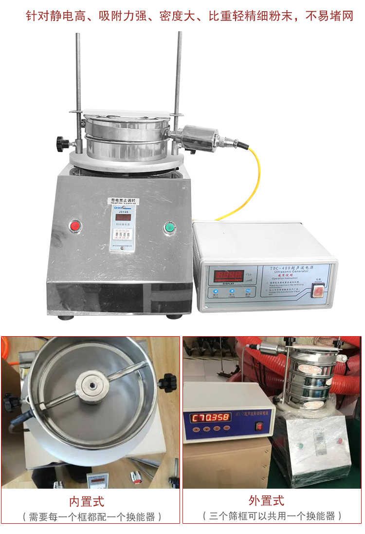 超聲波試驗篩的供電說明: 超聲波控制系統(tǒng)與試驗篩分別供電,試驗篩與超聲波電源均為單相供電。