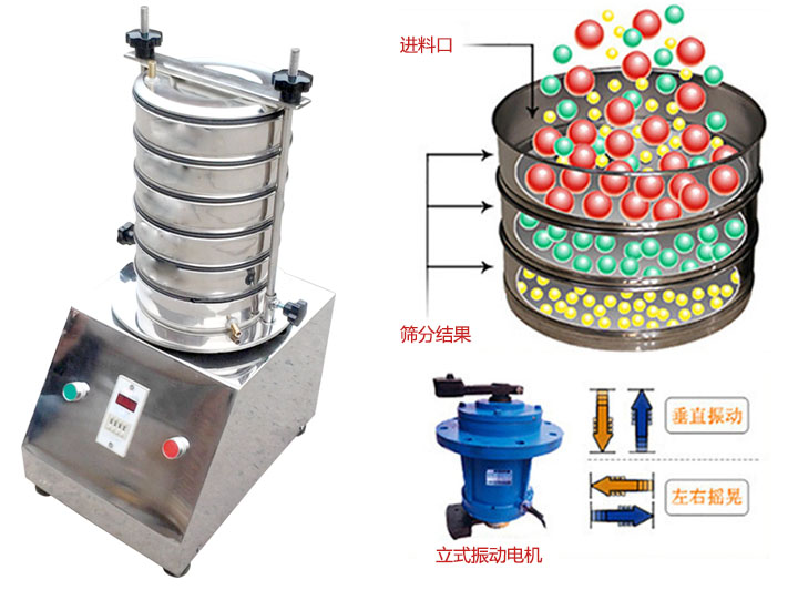 準試驗篩是以YZU立式振動電機作為整機振動源,通過振動電機帶動上部振動盤振動,再通過振動盤傳導(dǎo)至安放在振動盤上部Φ200篩框上,然后由需要檢測目數(shù)的篩框把小于篩面網(wǎng)孔的物料顆粒篩分至下層篩框,如此層層篩選,使每層試驗篩內(nèi)只留相同粒度的物料,達到不同粒度的分離并確定此物料的粒度組成,使Φ200型篩框中的物料能非常有效的起到過濾、分級、篩分目的。
