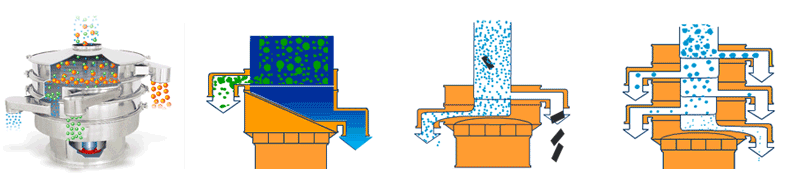 應(yīng)用 | 要用于物料原料的篩分和成品的最終生產(chǎn)檢驗,可以去除產(chǎn)品中的結(jié)塊和污染物,一次操作最多可提供5級分級。 | 適合高粘性、高靜電細(xì)粉,篩分精度可以提高80%以上,產(chǎn)量提高2-5倍。 | 模擬人工篩分的動作,產(chǎn)生了水平和投擲的三維滾動運(yùn)動,適用于500目以內(nèi)的細(xì)粒狀物料,篩分精度提高了90-95%,產(chǎn)量是圓形振動篩的5-10倍。 | 適合一般的粗略篩分或除雜,的進(jìn)、出料口設(shè)計在同一垂直方向上,這樣會加快物料的排料速度,處理量是普通圓形振動篩的2-5倍。 | 經(jīng)常用在液體過濾行業(yè),可去除液體或懸浮物中存在的不需要的顆粒,當(dāng)然也是可以作為粉末除雜??捎迷谔幚砹枯^小的工廠或小型作坊。 |